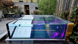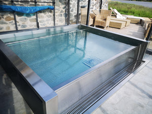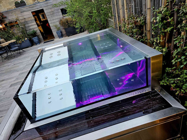 Les parois en verre et PMMA intégrées dans les spas Steel and Style subliment l’expérience aquatique en apportant une transparence exceptionnelle. Le verre, reconnu pour sa solidité et sa clarté, offre une vision nette et durable, parfaite pour mettre en valeur l’eau et créer une connexion visuelle avec l’environnement extérieur.